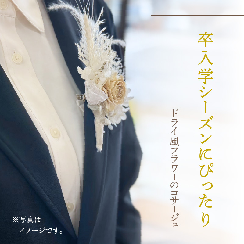 卒入学シーズンにぴったりのドライ風コサージュです。