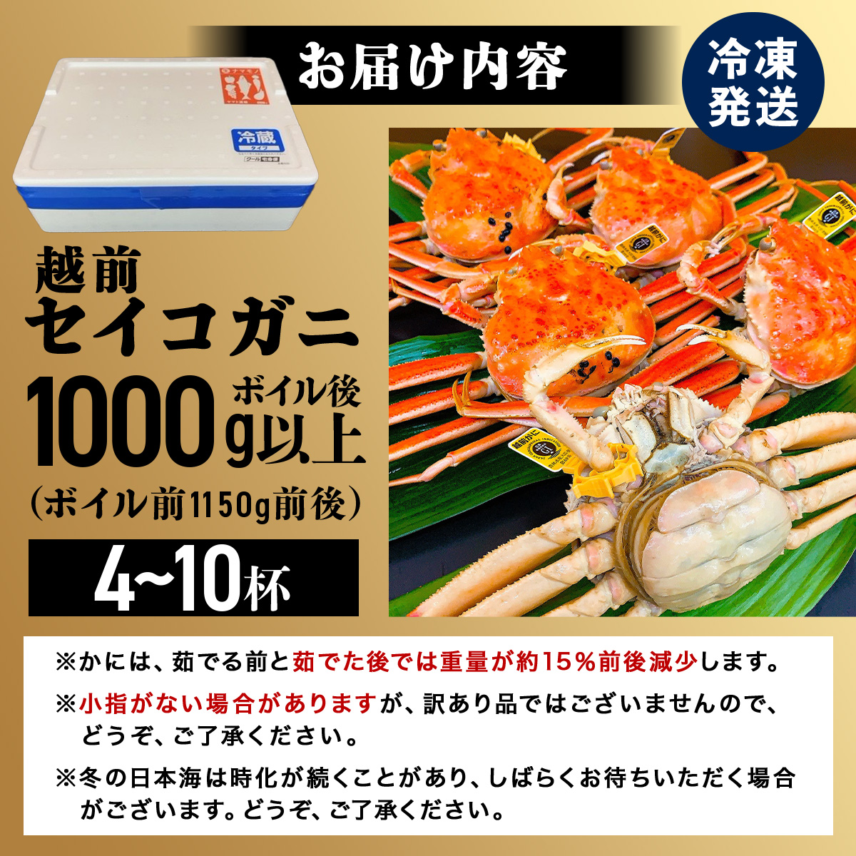 ・セイコガニ ボイル後1,000g以上(ボイル前1,150g前後)(4~10杯)冷凍