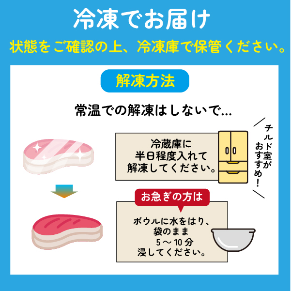 ※冷凍庫で‐18℃以下で保管の上、お召し上がりの際は冷蔵庫に半日~1日入れ解凍してください(チルド室がおすすめです。)。