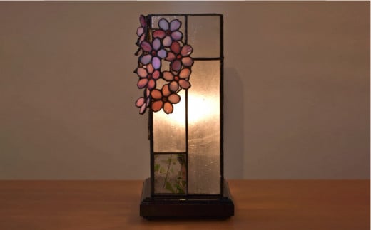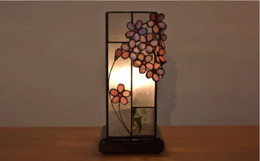 初春の少し冷たい風の中に、力いっぱいに咲いている桜の花を表現しました。部屋の中でランプのスイッチを入れたとき、そこにあたかも桜の花が咲いているように感じていただける作品です。