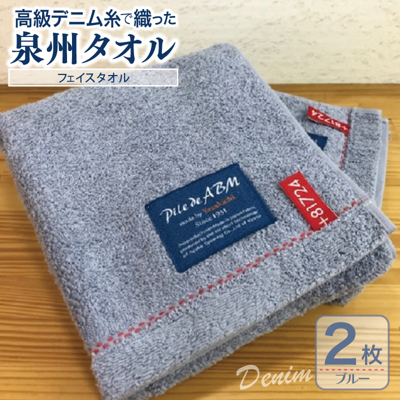 フェイスタオル(ブルー) 2枚 約34×90cm