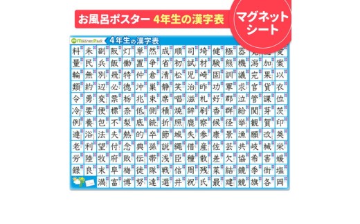 お風呂で漢字を覚えよう!お風呂に貼って小学校四年生で習う漢字を学習できるマグネット製ポスターです。