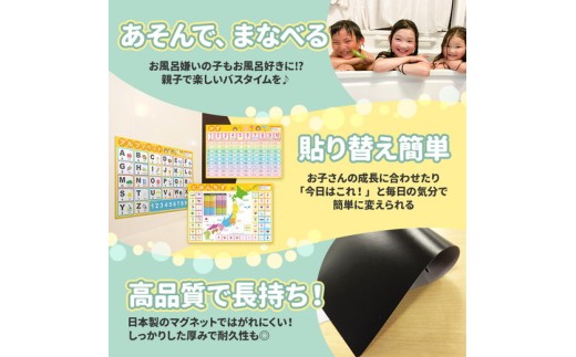 書き順を練習したり、読み方を覚えたり、お風呂の時間が楽しい学習時間になりますよ♪