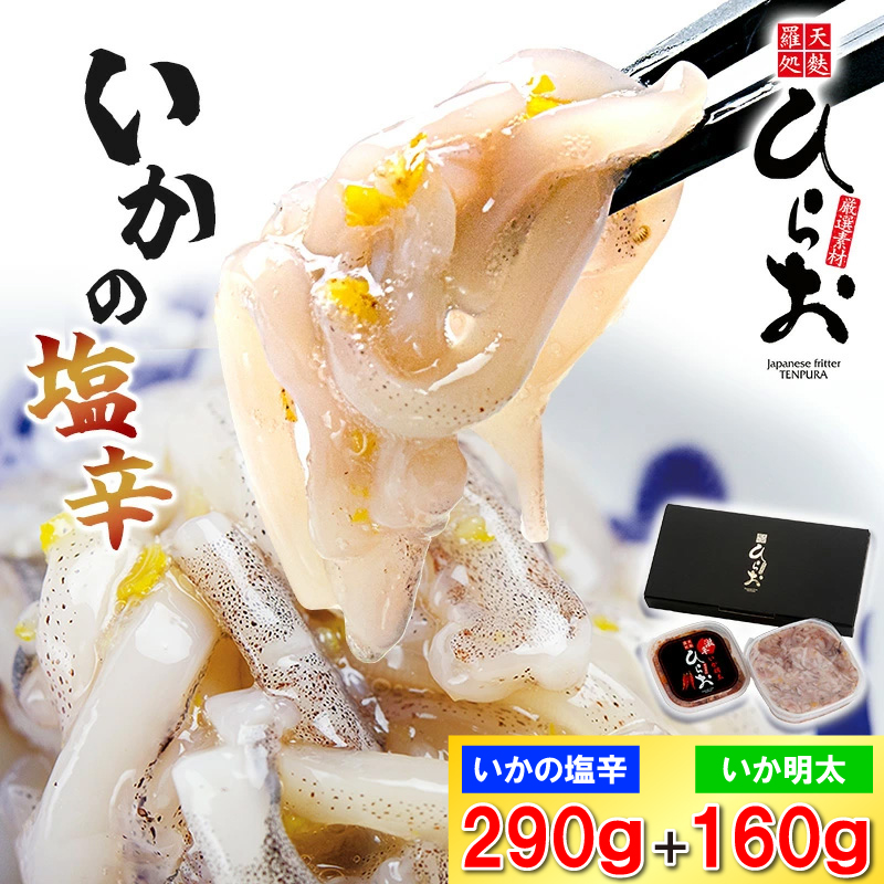 ![[ 天麩羅 処 ひらお ] 福岡 名物! いかの塩辛 290g + いか明太 160g HO002-1 【福岡県須恵町】](https://www.furusato.aeon.co.jp/g_img/403440/file_e01df37bfa2a2f1bb299a7a19c786e04.webp)