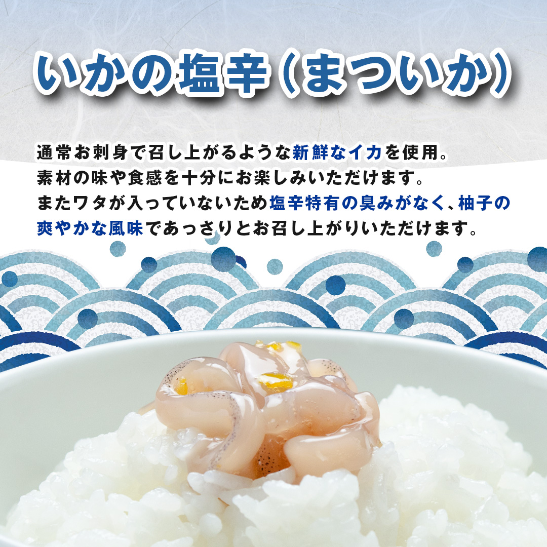 [ 天麩羅 処 ひらお ] 福岡 名物 ! いかの塩辛 食べ比べセット(まついか100g×2、いか明太100g×1) 合計300g HO001-1