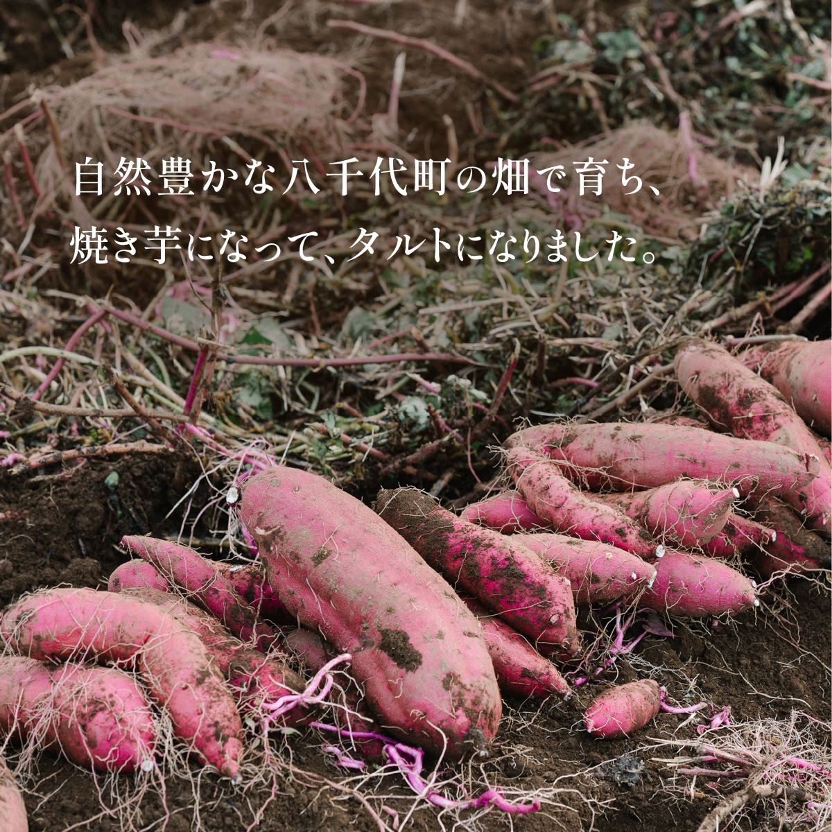 八千代町の畑で育ったさつまいもを、じっくり焼き芋にして甘みを引き出し、香ばしくスライスしてタルトにたっぷり敷き詰めました。