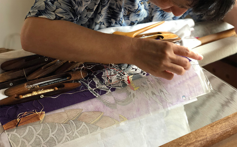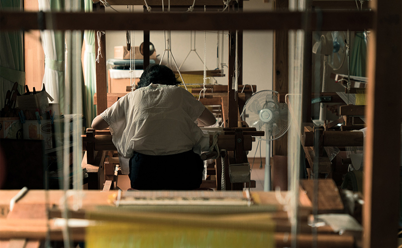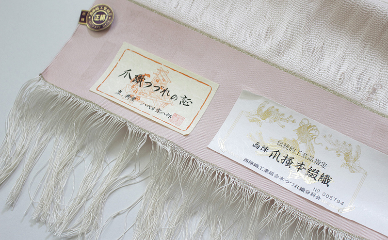 こちらの帯は熟練の織師が一点ずつ丁寧に織り上げた逸品です。古くなったものは裏返してもお使いいただけるので、親子三代に渡り、末永くご愛用頂けます。