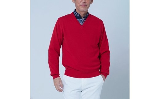 日本製 カシミヤ100% Vセーター 赤 Lサイズ(身幅54cm 身丈65.5cm)×1枚