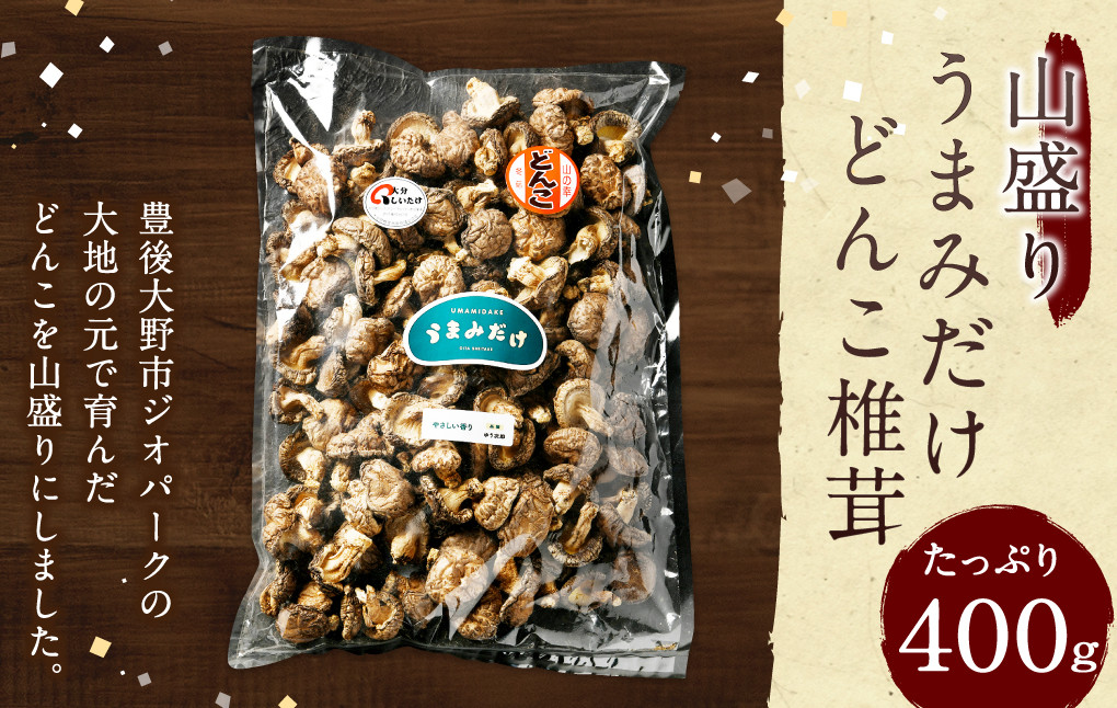 豊後大野市ジオパークの大地の元で育んだどんこを山盛りにしました。