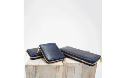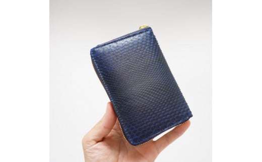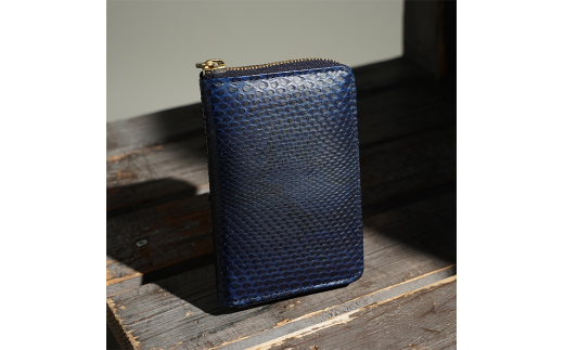 全身にダイヤモンド柄のあるダイヤモンドパイソンを阿波正藍染法によって染め上げられた素材感は、“JAPAN BLUE”と称される藍の美しさが際立ちます。