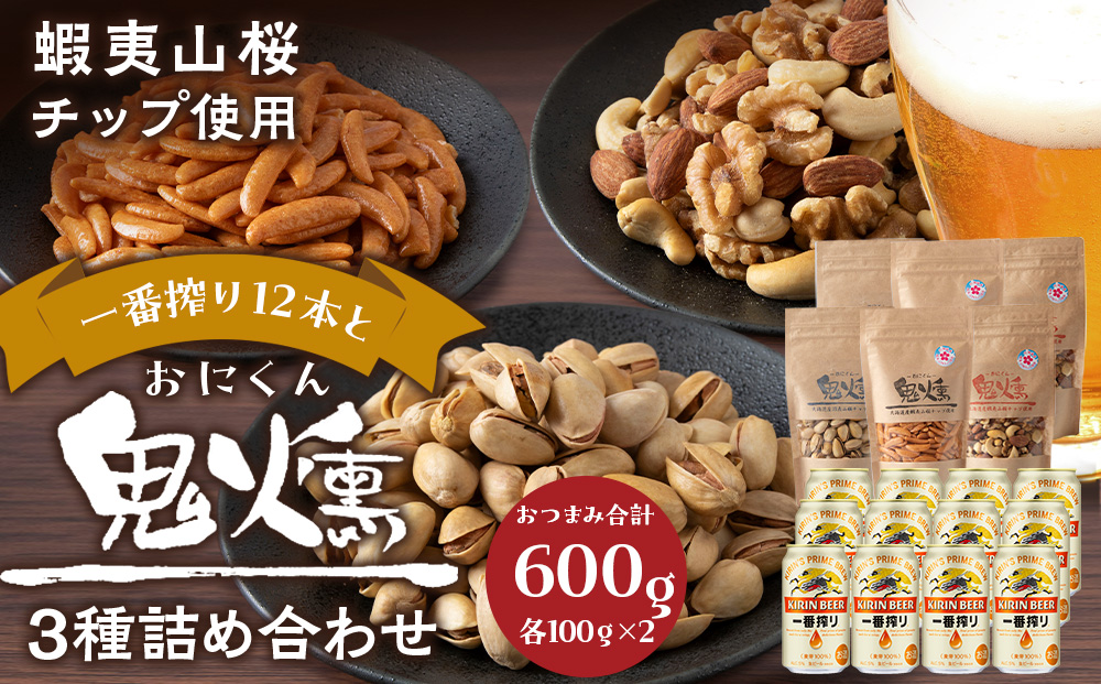 ・鬼燻シリーズ3種(鬼燻ミックスナッツ×2袋、鬼燻柿の種×2袋、鬼燻ピスタチオ×2袋)計6袋