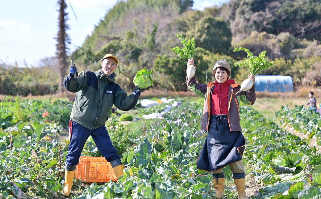 淡路市佐野地区の潮風当たる太陽サンサンの畑で、自分達がおいしいと思う品種を厳選して栽培。