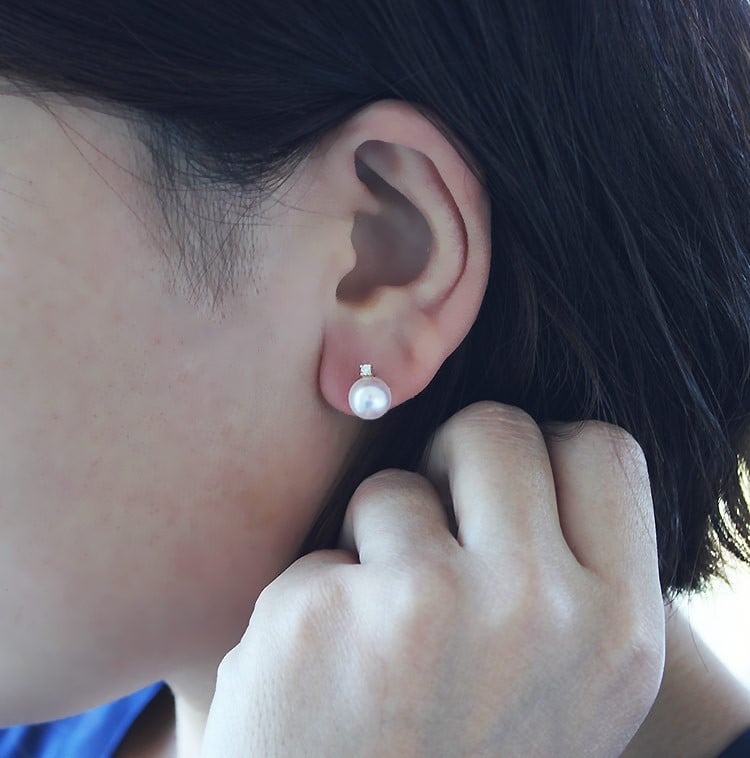 アコヤ真珠のサイズは8-8.5mm、形はラウンド。ダイヤは0.05ct(ペア)となります。