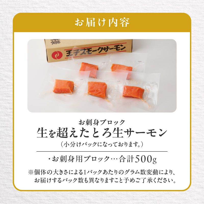 魚 お魚 さかな 魚貝類 魚介類 サーモン お刺身 刺身 とろ生サーモン お寿司 寿司 ブロック 漬け魚 贅沢 ご褒美 美味しい おいしい 旨味 おかず 夕食 酒の肴 酒のお供 王子サーモン ふるさと納税 北海道 苫小牧市 おすすめ ランキング プレゼント ギフト T041-009-02