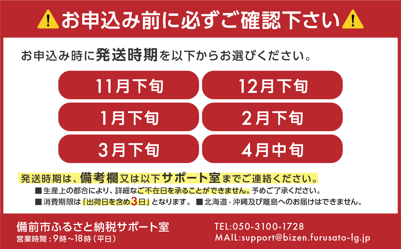 ※発送期日内にご不在日等がある場合には、不在日を避けて発送時期をお選びください。