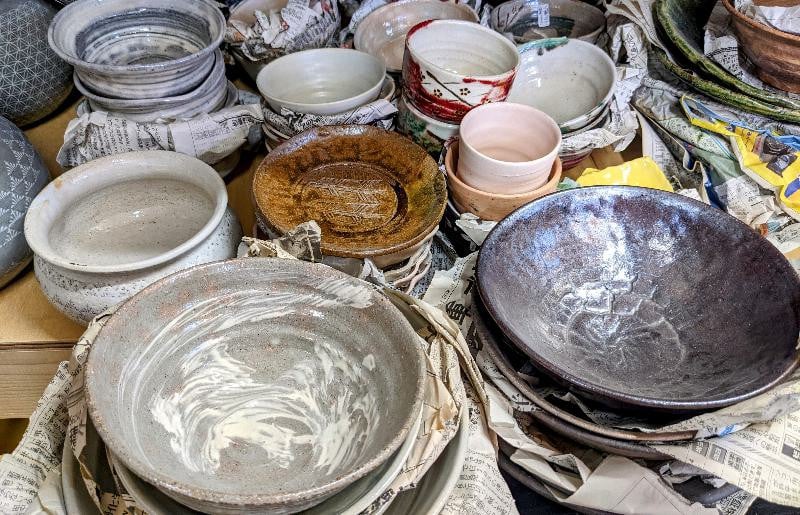 佐野焼きの陶器:平皿、小皿、プレート、お茶碗、カップ、麺用の鉢、湯呑、ビールカップ類他