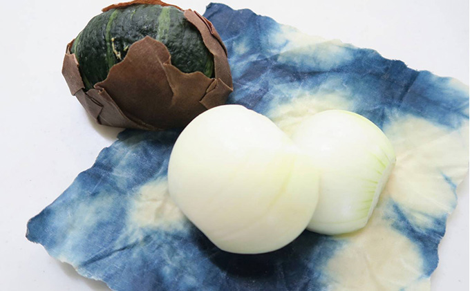 コットン生地に、みつろう、ホホバオイル、松やにを染み込ませて作った食品保存用ラップです。