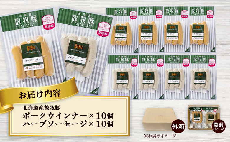 北海道産 放牧豚 無添加 ポーク ハーブ 2種 100g 各10パック | 計80本 オンライン 申請 ふるさと納税 北海道 恵庭 ソーセージ ウインナー 豚肉 安心 安全 朝食 おかず お弁当 おつまみ BBQ 焼肉 食べ比べ 恵庭市
