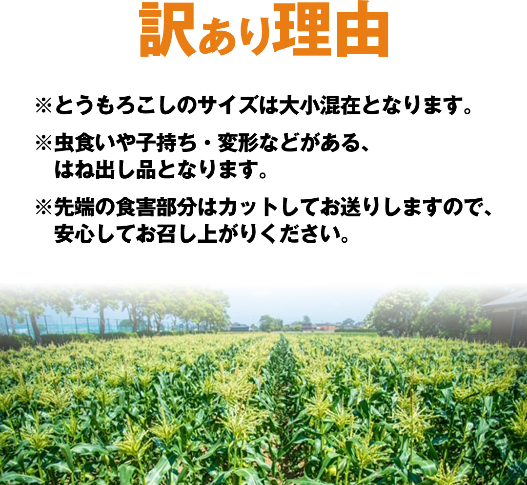 ※生ものですので天候により、とうもろこしの生育状況が変わってきます。