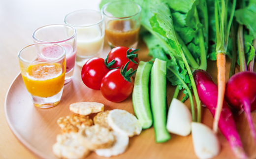 全9種類(人参味噌、りんご梅干、ミニトマト、りんご豆乳、黄人参豆乳、葡萄と林檎のフルーティ、にんにく胡麻味噌、玉ねぎ黒胡椒、辛長ねぎドレッシング)