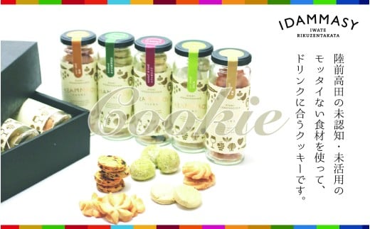 希少性が高く北限のお茶である気仙茶を贅沢に使い、茶葉の華やかな香りとやさしい甘みが調和した上品な味わいのモッタイない食材を扱うIDAMMASYブランドの気仙茶クッキーです。日本酒やワイン・珈琲・お茶などとのペアリングをお楽しみください。