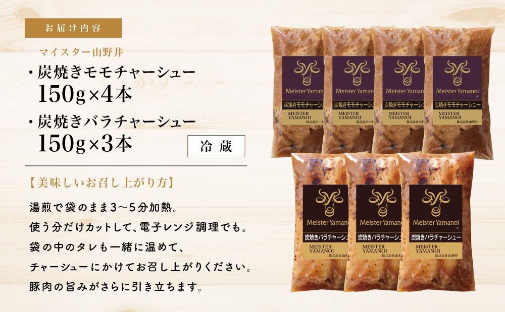 【マイスター山野井】モモ&バラチャーシュー 食べ比べセット 7本 計1,050g チャーシュー 焼き豚 焼豚 炭火 真空調理 ブロック 肉 豚肉 バラ モモ 肉加工品 惣菜 おかず おつまみ 酒の肴 チャーハン 炒飯 ラーメン チャーシュー丼 焼き豚丼 焼豚丼 丼 味付き 特製タレ たれ お取り寄せ 家庭用 簡単調理 時短 便利 セット 食べ比べ グルメ 冷蔵 鹿児島 鹿児島県 南さつま市-[03-V08]