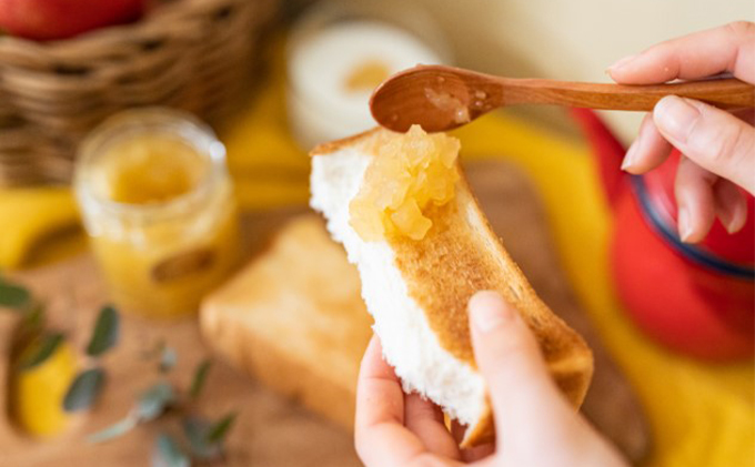 紅玉・サンふじのジャムソースは、果肉を角切りにし、粒がゴロゴロ入っています。