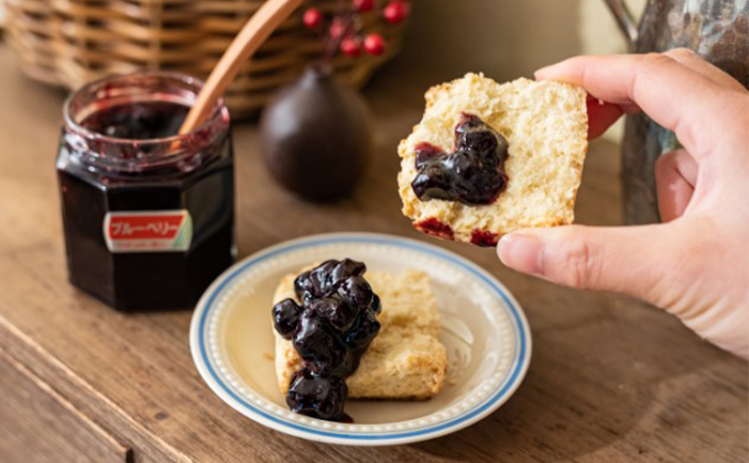 ブルーベリーのジャムはヨーグルトにもよく合うように、少しゆるめに作ってあるので、ジャムソースと名づけました。