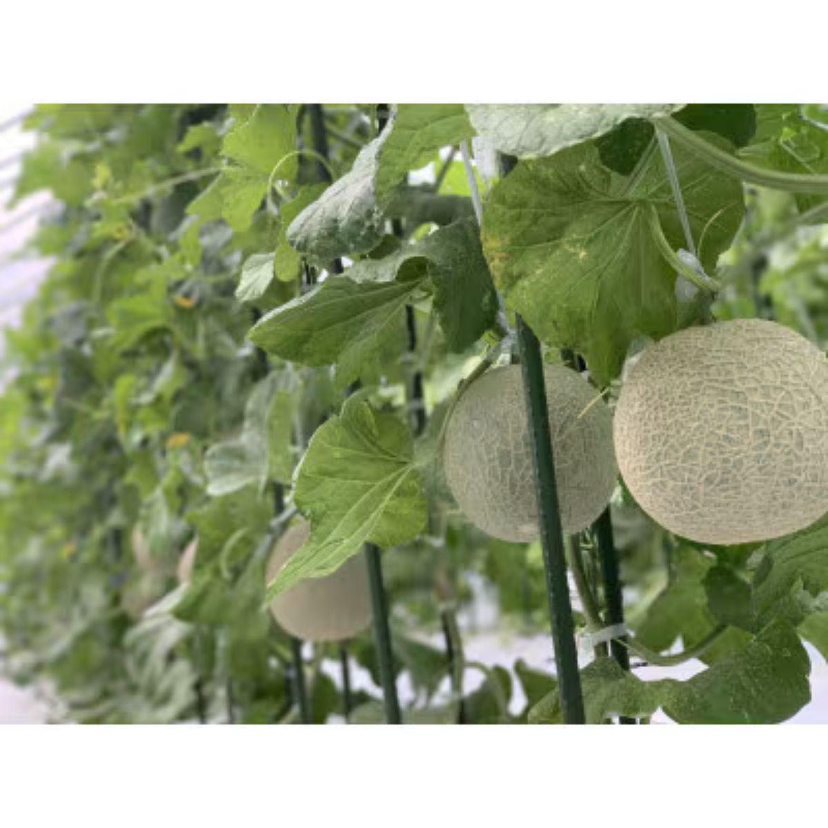 このメロンは甘み・旨みを凝縮させるため、1果採り(1本の木に1玉だけ実をならす事)栽培をしています。