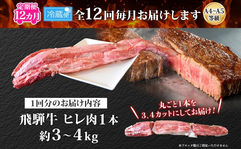 《1回あたり》飛騨牛 ヒレ約3~4kg 3割(シャトーブリアン1kg弱含む) A4~A5等級使用