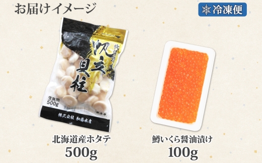 返礼品名:訳ありホタテ500g&鱒いくら醤油漬け100g