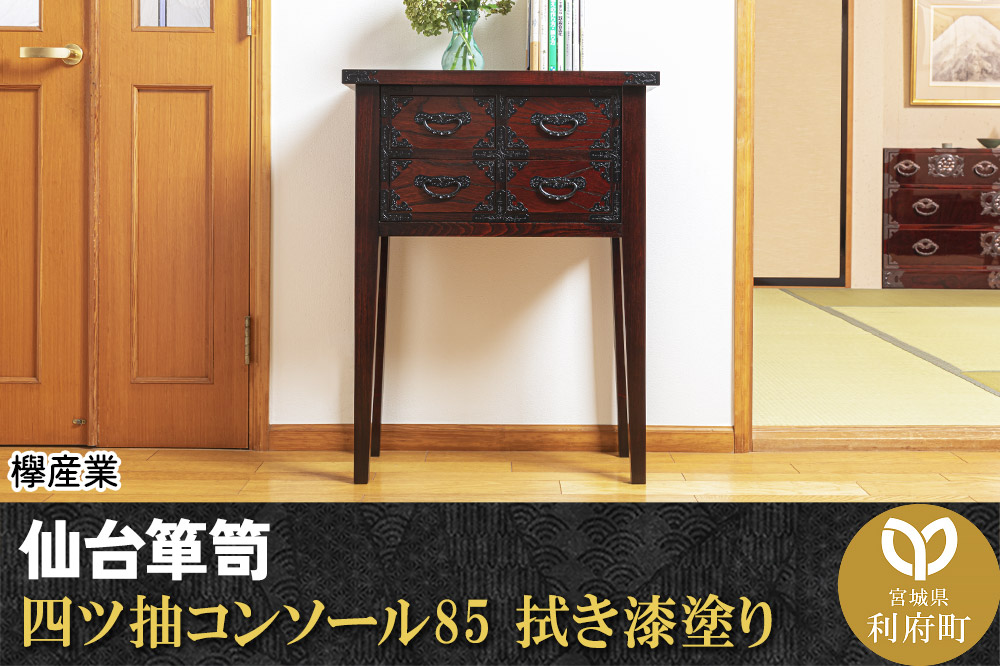 ■地場産品に該当する理由:宮城県の伝統工芸品である仙台箪笥を町内にて企画・デザイン、組み立て、金具装着、磨き、最終仕上げまでの全ての工程を行っている。