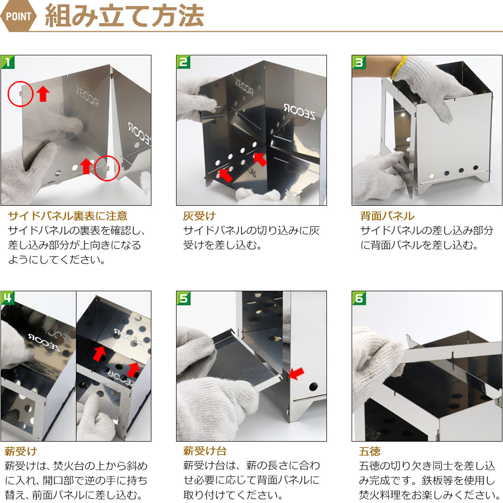 ZEOOR極厚鉄板ソロシリーズや、イワタニ カセットコンロ対応鉄板(焼面220×220mm)などが使用できる五徳付き。ケトルやダッチオーブン、重量のある鉄板を乗せても安定感があり、安心してご使用いただけます。
