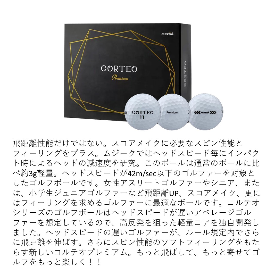 さらに優れたスピン性能とソフトなフィーリングをもたらす、新しい「コルテオプレミアム」。もっと飛ばして、もっと寄せて、ゴルフをもっと楽しくしましょう!