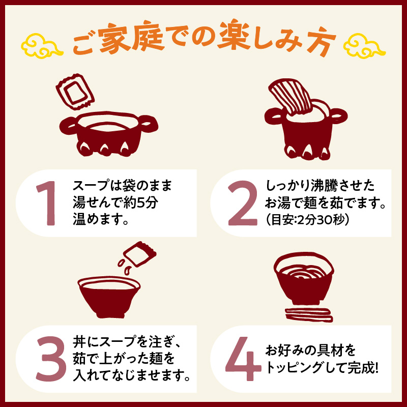 ※ラーメンセットは生麺とスープのみのお届けとなり、具材は同封されていません。これにより、お客様がお好みのトッピングで自由にアレンジして楽しむことができます。