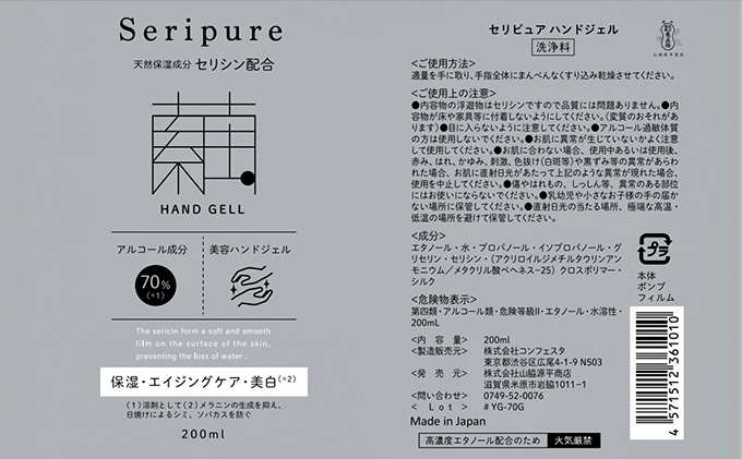 除菌ハンドジェル「セリピュアハンドジェル」(200ml入り)1本