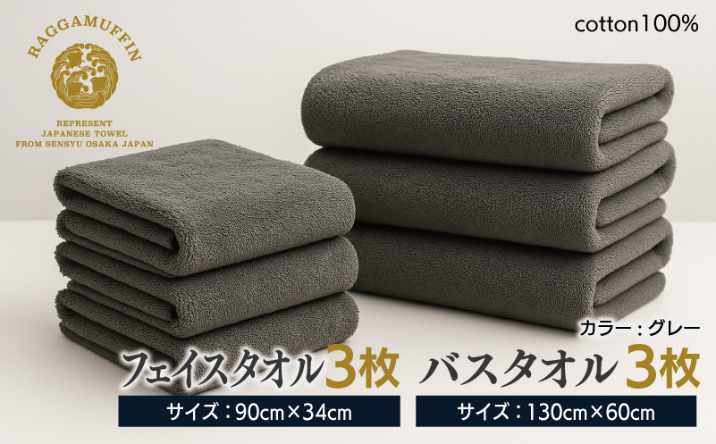 ・フェイスタオル3枚(グレー)