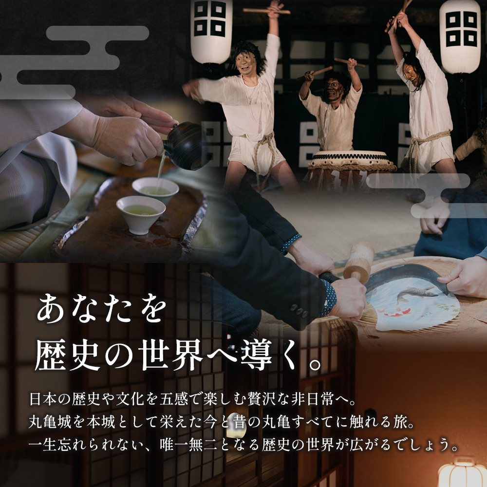 京極家が旧丸亀藩主になって以降、 築城400年以上経った現在もなお守り続けられてきた丸亀城に泊まる旅の体験をして頂きます。