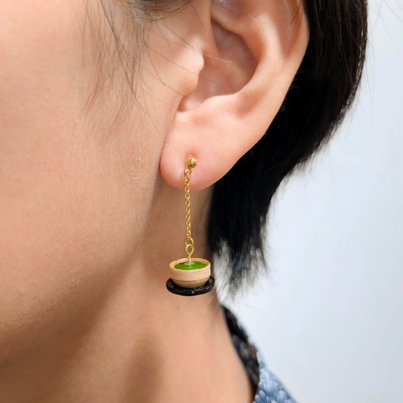 茶筅のピアス、緑茶のピアス 【材質】紙,レジン液【金具】サージカルステンレスピアス 箱入り