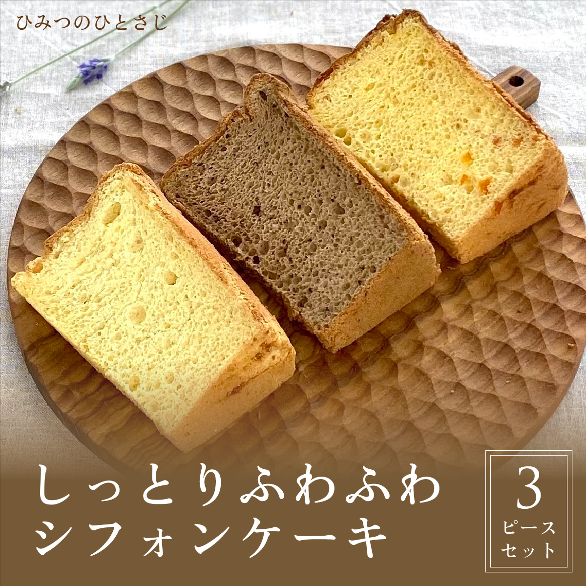 大きな金型でしっとりふわふわに焼上げた自慢のシフォンケーキを食べやすい大きさにカットし、人気のあるフレーバーを同時にお求めいただける3ピースのセットです。素材のもつ美味しさを堪能できるシンプルな味わいのプレーン、ほんのり甘いミルクティーのような味わいのアールグレイ、シトラスの爽やかな風味が広がる甘酸っぱい味わいの柑橘をお楽しみ下さい。