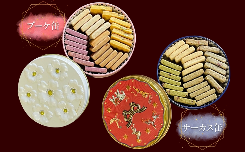 ・内容量:はるゆたかクッキー2缶(ブーケ缶&サーカス缶) 1缶当たり5g×26枚