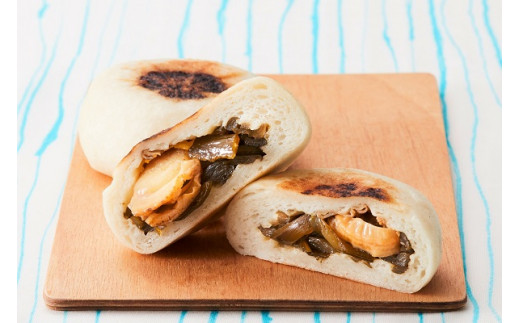 日本では珍しい、「海産物」が入ったおやきです。※茎ワカメとホタテ入り