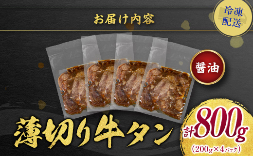 軽い食感と濃厚な味わいを楽しめる 薄切り牛タン(醤油)計800g を返礼品としてお届けします。