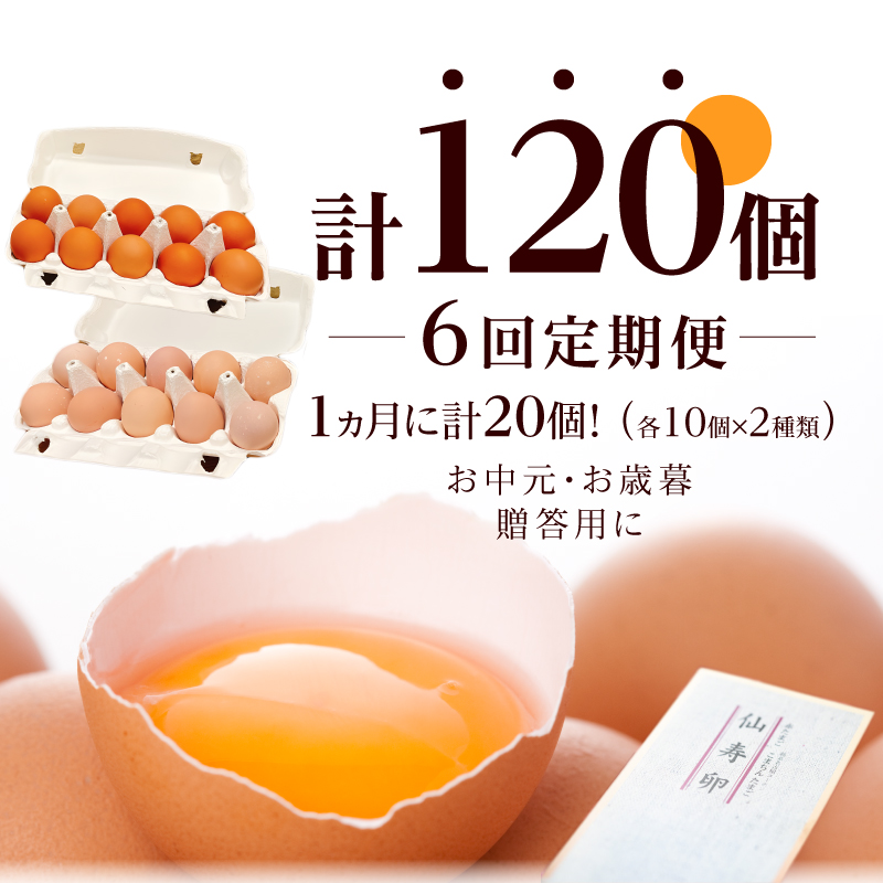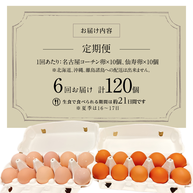 1度につき、名古屋コーチン卵×10個&仙寿卵×10個を、6ヶ月連続でお届けいたします!【計各60個】