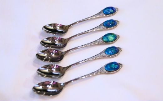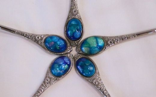 七宝焼きの飾りをほどこしたスプーン5本(ブルー系)