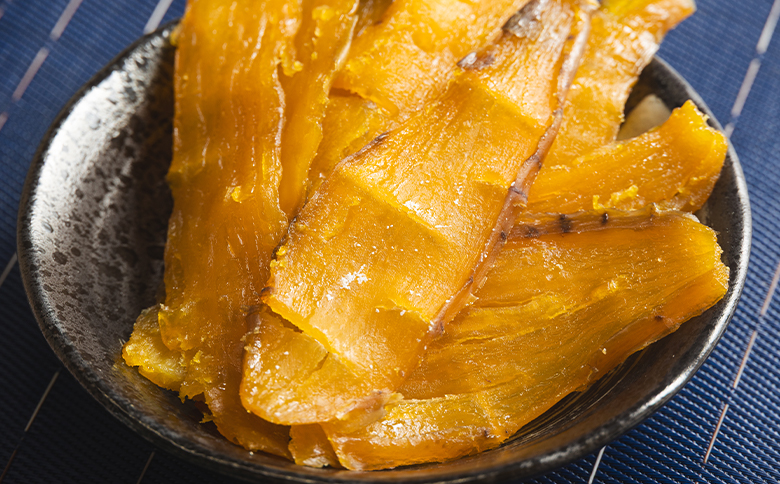 安納芋の干し芋は、ねっとりとした食感と強い甘みが特徴で、蜜が溢れるような甘さが楽しめます。