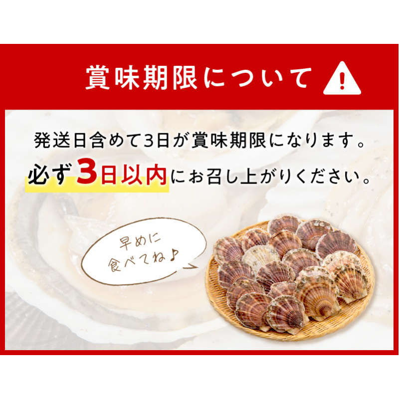 ※すぐにお召しあがりにならない場合は、早めに貝から身を外して冷凍で保存してください。