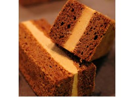 クーベルチュールチョコレートを惜しみなく使用した自慢のチョコレートケーキです。冷蔵庫で保管され冷たいうちにお召し上がりいただきますと「クシュ・パキッ」生地とクリームの絶妙な食感と口の中いっぱいに広がるクーベルチュールチョコレートの贅沢な香りをお楽しみください。