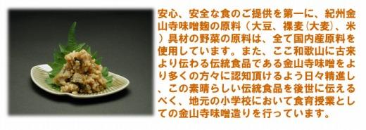 和歌山県に古くから伝承されてきた、米、はだか麦、大豆、白瓜、茄子、生姜、 しそを混合した、野菜たっぷりな「そのまま食べるお味噌」です。 和歌山県優良県産品(プレミア和歌山)に認定されている金山寺味噌です。
