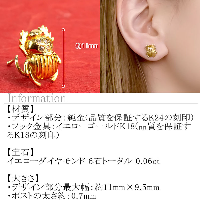 幸運を呼ぶと言われている縁起の良い純金でお造りしたピアス